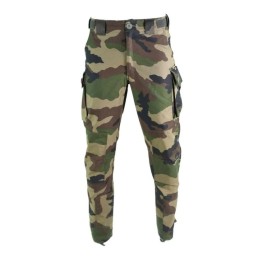 30,00 €Pantalon treillis F2 camouflage CE conçu dans un tissu satin 85 % de coton et 15 % de polyester de grande qualité et confortable fermé par zip, 2 poches italiennes, 2 poches cuisse avec soufflet fermées par rabat avec pression, empiècement double épaisseur aux genoux pour plus de résistance