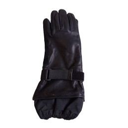 30,00 €Gants neufs cuir noir spécialiste de l'Armée Française, paume doublée en cuir retourné, intérieur doublé polaire, manchette au poignet + élastique avec velcro.